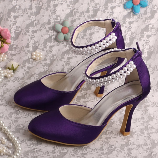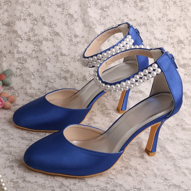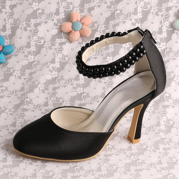 Custom Handmade Pearl Strap Shoes Bridal for Wedding High Heel Women Pumps Zipper